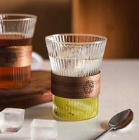 आधुनिक उच्च बोरोसिलिकेट ग्लास कॉफी कप मजबूत धारीदार सिलेंडर गर्मी प्रतिरोधी स्कूल के लिए आवश्यक नाश्ते की चाय के लिए आवश्यक